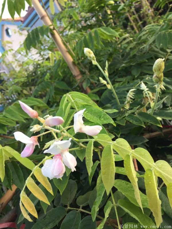 紫藤,棵型高0.5~2m高左右,樹葉形狀按照品種不一樣有差別,有一些較為細長,有一些比較圓,紫藤花朵顏色是充實,如國旗紅,粉色,黃色,淺白色等,開花時間十分長,花量大,每年的是花開的時間時間段從6月下旬到8月中旬,花種9~10月成熟,有較好的出芽能力。