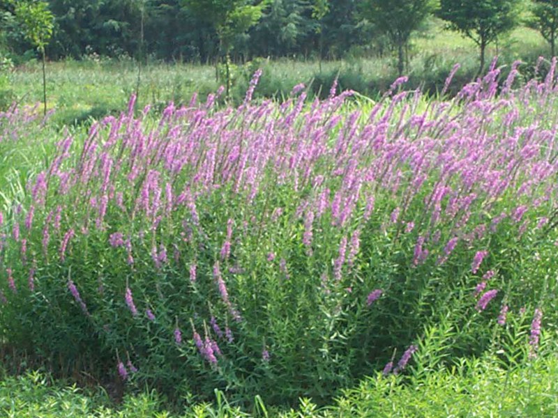 千屈菜又叫水枝柳、水柳、對葉蓮等,多年水生宿根草本植物,植株高約1米,直立生長,主桿上有許多分枝,葉子對生,披針形。葉子長4~6cm,寬1cm左右。總狀花絮長在最上面,長約30cm,花朵簇生。